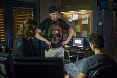 Joel McHale rocks the backwards baseball cap/Alice in Chains...
