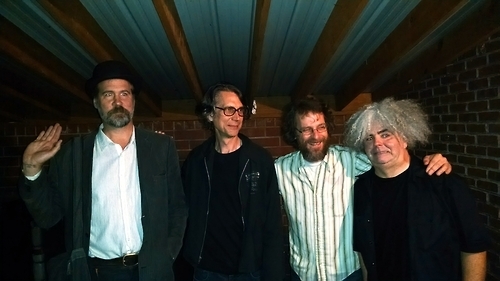 Arguably the nicest guys to survive the grunge era: Krist (Nirvana, Sweet 75, Eyes Adrift), Paul (Ministry, Blackouts, Lard, Revolting Cocks, Pigface, USSA, 1000 Homo DJ’s), Steve (Mudhoney, Green River), & Buzz (Melvins, Fantomas, Venomous Concept) hugging it up after Buzz’s solo acoustic show in Portland. Buzz is putting on his best “I hate having my picture taken” face.