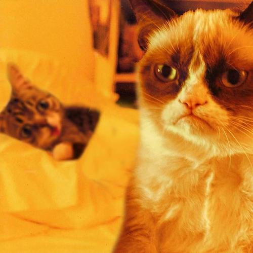 Lil Bub and Grumpy Cat recreate the cover of the Afghan Whigs'...