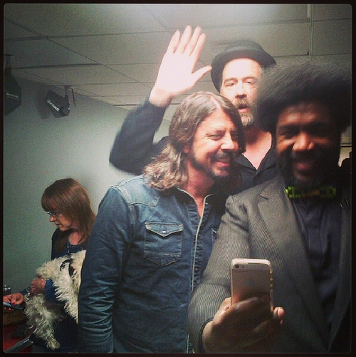 Dave Grohl, Krist Novoselic and Questlove, backstage at The Tonight Show.