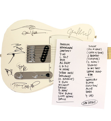 Bid on this guitar signed by Pearl Jamon November 21, plus the set list from that night’s show in San Diego. The items are part of an auction benefiting Sandy Hook Promise.
