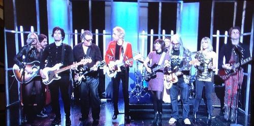 Backstage at SNL last night: Kim Gordon, Lance Bangs, J Mascis and Carrie Brownstein.