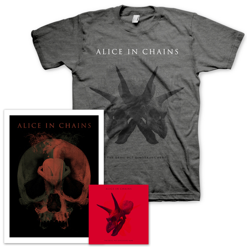 The release date for Alice in Chains’ The Devil Put Dinosaurs Here has been pushed back two weeks, to May 28. You can preorder this deluxe package, which comes with an exclusive T-shirt and alimited-edition lithograph signed by the band, at the band’s official site.