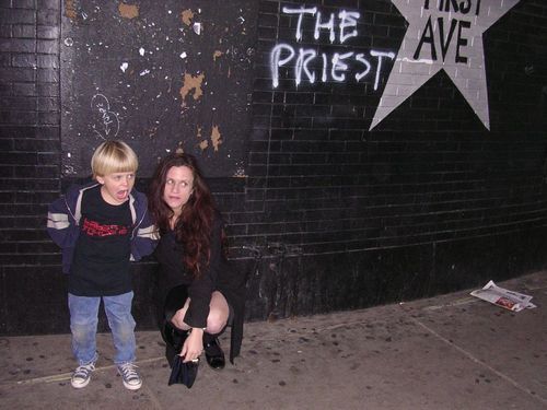 We’ve reached 500 followers! I was saving this rare/unseen photo for the event. Kat and her son (screaming in a Babes shirt) outside First Avenue in MN.