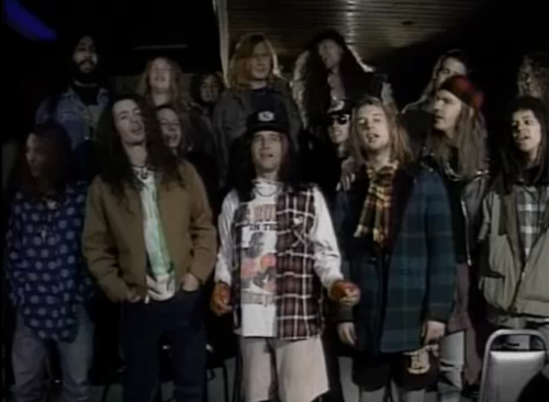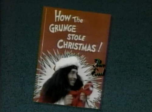 Stills from “How the Grunge Stole Christmas,” another Almost Live! skit, this one from December 1992. Starring Kim Thayil of Soundgarden and members of Love Battery, among many other Seattle rockers. Supposedly Mike McCready’s in there, though I’m not so sure. Watch it here.