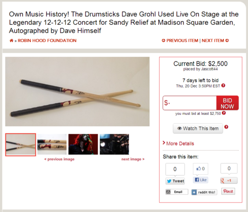 Bid on the drumsticks Dave Grohl played with at the 12-12-12...