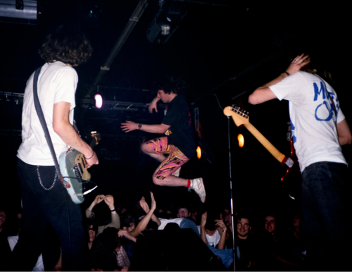 Mudhoney play Portsmouth, U.K., Dec. 2, 1989. Screw flannel! Check out that kid’s day-glo spandex shorts. (Photo via @ExperienNirvana)