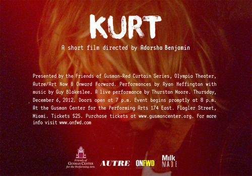 KURT, a short film directed by Adarsha Benjamin, debuting December 6 during Art Basel Miami Beach. (See stills here.)