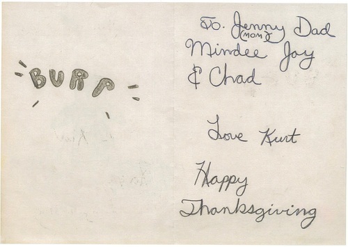 HAPPY THANKSGIVING! Thirteen-year-old Kurt Cobain’s 1980 holiday card to his dad and stepfamily. (Via NirvanaNews)