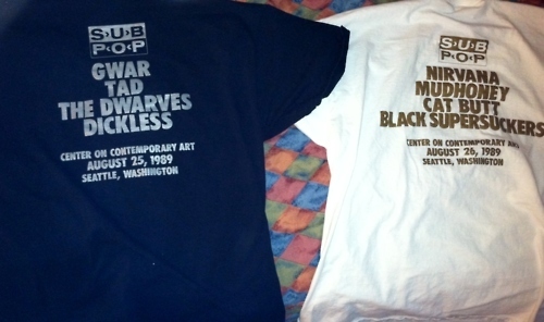 Sub Pop 1989 CoCA show t-shirts, designed by Jim Sorenson....