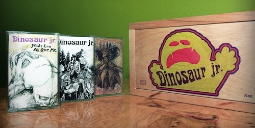 From the press release: Dinosaur Jr. have announced the reissue of their first three albums on cassette via Joyful Noise Recordings. Sold as a 3-album custom wooden box set – limited to just 500 copies – the Cassette Trilogy includes each album from the classic Dinosaur Jr. canon: 1985's Dinosaur, 1987's You're Living All Over Me, and 1988's Bug.
