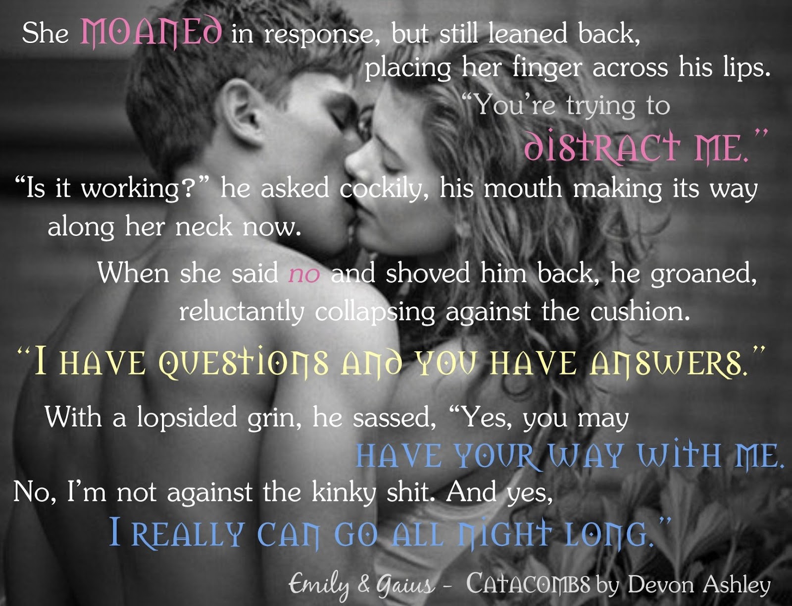 CATACOMBS is NOW AVAILABLE! I know, I know. It took forever to get this out and for that I am so sorry! (Please, stop the hate mail already!) :) I was on a romantic writing binge, and since my Immortal Archives books focus mainly on the Urban Fantasy, it took awhile for me to get back to writing it. Not because I love these characters any less than the others I've written about! But because I wanted to do them justice, and if that meant waiting awhile before continuing their story, then that's what I'd do. And did. So without further ado, here are the links where you can pick up the 3rd book in The Immortal Archive series. Paperbacks available on Amazon US