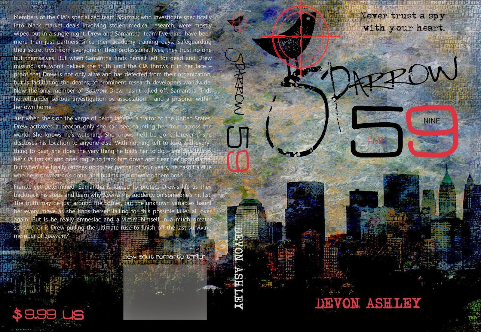 Members of the CIA’s specialized team Sparrow, who investigate specifically into black market deals involving stolen medical research, were mostly wiped out in a single night. Drew and Samantha, team five-nine, have been more than just partners since their academy training days. Safeguarding their secret tryst from everyone in their professional lives, they trust no one but themselves. But when Samantha finds herself left for dead and Drew missing, she won’t believe the truth until the CIA throws it in her face – proof that Drew is not only alive and has defected from their organization, but is facilitating the deaths of prominent research developers worldwide. Now the only member of Sparrow Drew hasn’t killed off, Samantha finds herself under serious investigation by association – and a prisoner within her own home.