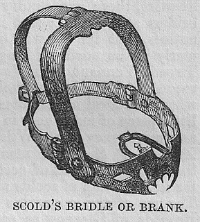 "Dorothy Waugh, for declaring Truthin the Streets of Carlisle, and testifying against Sin and Wickedness, was,together with Anne Robinson who accompanied her, committed to Prison by theMayor, who ordered an Iron Instrument of Torture, called a Bridle, to be putupon the said Dorothy's Head, which they kept on about two Hours: And some timeafter having the like Iron Instrument put on both their Heads, which preventedtheir speaking to the People, they were publickly led through the Streets, andexposed to the Scorn and Derision of the Rabble, and then turned out of theCity."  Source:AN ABSTRACT OF THE SUFFERINGS Of the PEOPLE call'd QUAKERS.  FOR THE Testimony of a Good Conscience, Fromthe TIME of Their being first distinguished by that NAME, Taken from OriginalRecords, and other Authentick Accounts. VOLUME  I. From the Year 1650 tothe Year 1660.  LONDON: Printed and Sold by the Assigns of J.Sowle, at the Bible in George Yard, Lombard-street, 1733.