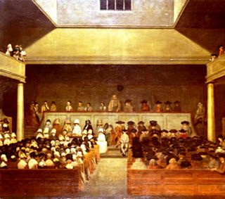 The existence of the baby was unknown to most people (and Isuspect its malformation was kept from Mary Dyer as a mercy), until AnneHutchinson's second trial for heresy and sedition in March 1638. Most of themen in the Hutchinson faction had gone on ascouting and surveying trip to Aquidneck Islandto arrange for their exodus in April 1638. So the governors and ministersarrayed themselves as prosecutors, jury, and judge against Anne, who was not allowed defense counsel.