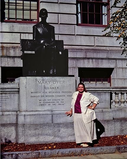 of the Dyer statue in Boston. I've read Mary Dyer's handwriting for myself, and learned that her words and the words of the letters we read in history and genealogy sites are not the same—her words were rewritten in London, after her death.