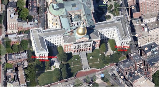 Unfortunately, when I was at the Boston Statehouse I didn't know that she was my ancestor. Thus, I took a picture of the statue but failed to get one of myself standing next to it.