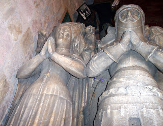 Have you noticed the effigy photos in my blog header? The two upright effigies are at Coverham, Yorkshire. They represent Robert and Ranulf, lords of Middleham, Yorkshire a handful of miles away. Ranulf makes a few appearances in To Defy a King, being the brother-in-law of Mahelt's first husband, Hugh Bigod. Robert and Ranulf, father and son, were ancestors of the Nevilles, who get most of the hits in my blog stats!