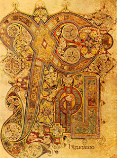 Chi-Ro carpet page from Book of KellsThose were the high points of my experience, really. It's hard to choose which place was more beautiful or perfect than the last. The 1500 year-old Clonfert cathedral was tiny and dark, with birds flying in the rafters above, and electric space heaters stored in the vestry. Glastonbury was immense, but roofed in blue sky and carpeted in grass. My ancestors prayed and took Communion 840 years ago, in that place, when it stood in all its glory. St. Margaret's Chapel, a tiny barrel-vaulted chapel on the rock at Edinburgh Castle, was dedicated to Queen Margaret by her son and my ancestor, David I of Scotland. Two generations of my Neville ancestors were interred at Durham Cathedral, the largest medieval building in Britain. I took Communion at Westminster Abbey, where other ancestors were crowned or buried; and at St. Paul's, a monument to God's glory. Holy places, all, for more than a millennium. Hard to fathom, when you're native to the American Southwest, really only habitable since the advent of air conditioning.