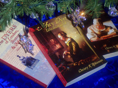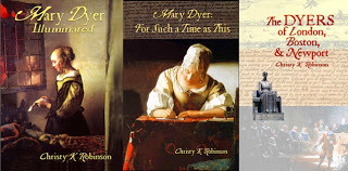 Christy K Robinson is the author of five books (all with five-star reviews), three of them concerning William and Mary Barrett Dyer and their associates in 17th-century England and New England. Click a highlighted link to read the reviews and purchase the books or ebooks.