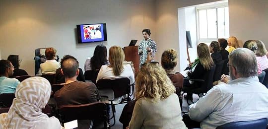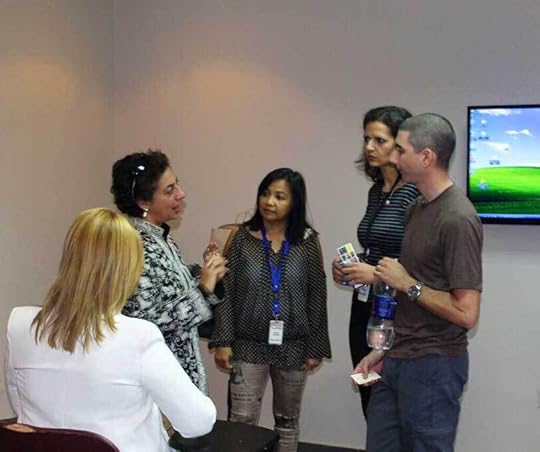 The director of AUC Press and bookstore owner Aboudi at the Cairo International Book Fair! New books by Dominique Navarro directly behind Nigel’s head!