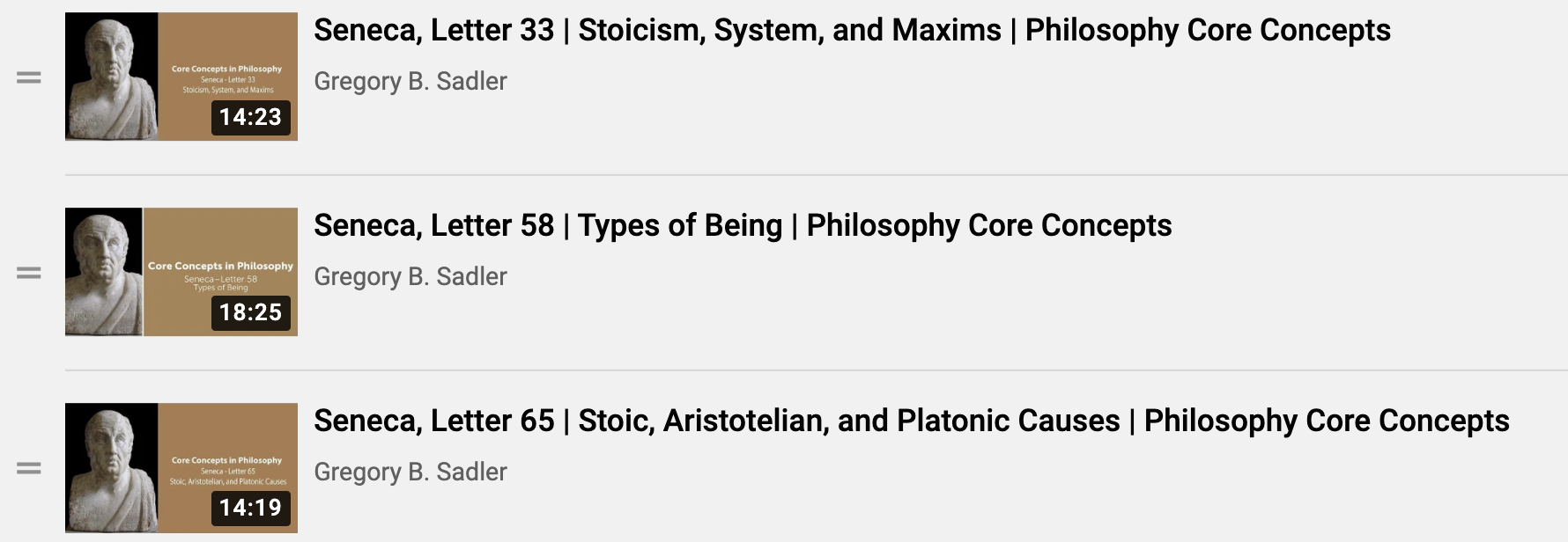 Earlier this summer, I created seven new core concept videos on a selection of letters from the great Stoic philosopher Seneca, in which he ranges over a number of key topics, not just in Stoic, but also Aristotelian, Platonic, and other philosophical traditions. Each video focuses on one of the Letters on Ethics: To Lucilius.