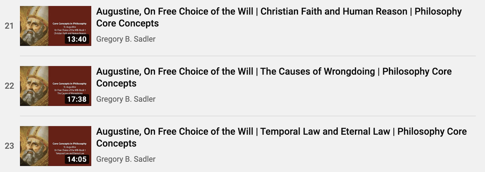 Six Videos on Augustine of Hippo's On Free Choice of the Will, book 1