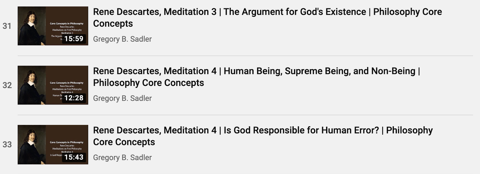 Eight Videos on Rene Descartes' Meditations 3 and 4