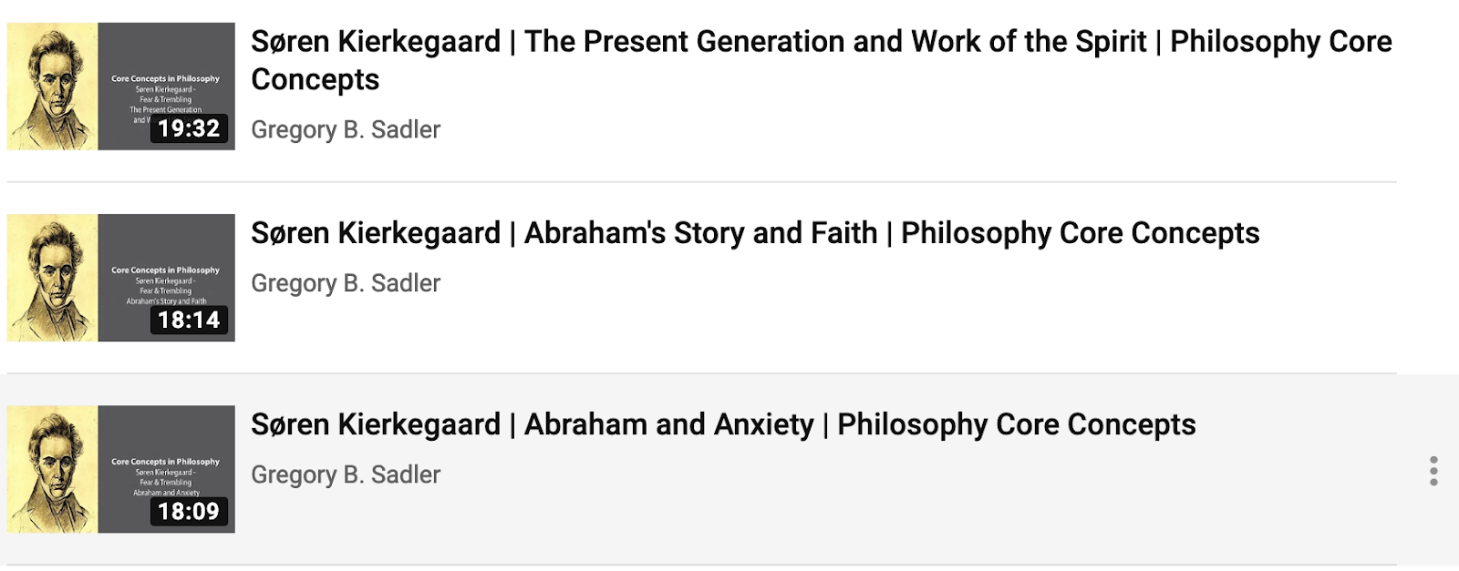 Nine Videos on Soren Kierkegaard's Fear and Trembling