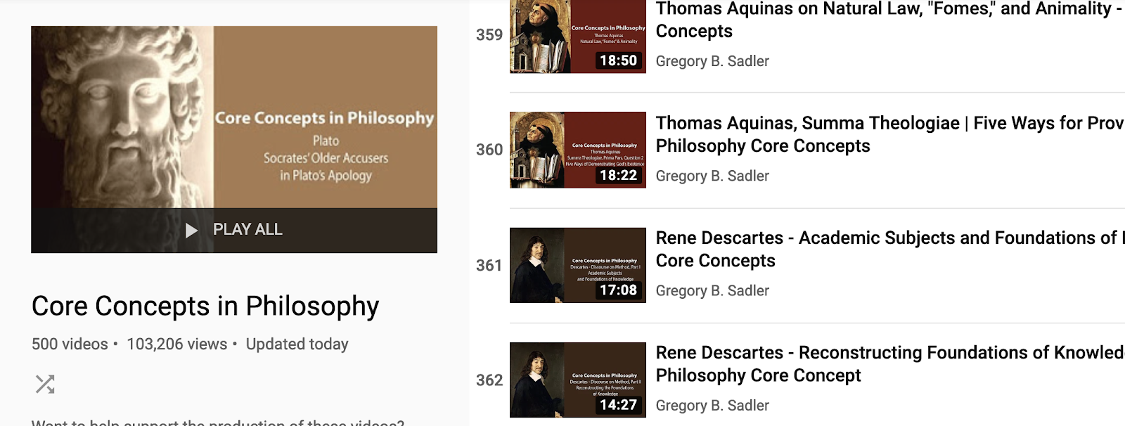 Years back, I started producing a new kind of video, in a series I called Philosophy Core Concepts. After seeing the hour-long videos I recorded in my Critical Thinking, Introduction to Philosophy, and Ethics classes take off, I started thinking about other sorts of videos I might produce that would be useful for my students and for other viewers worldwide.