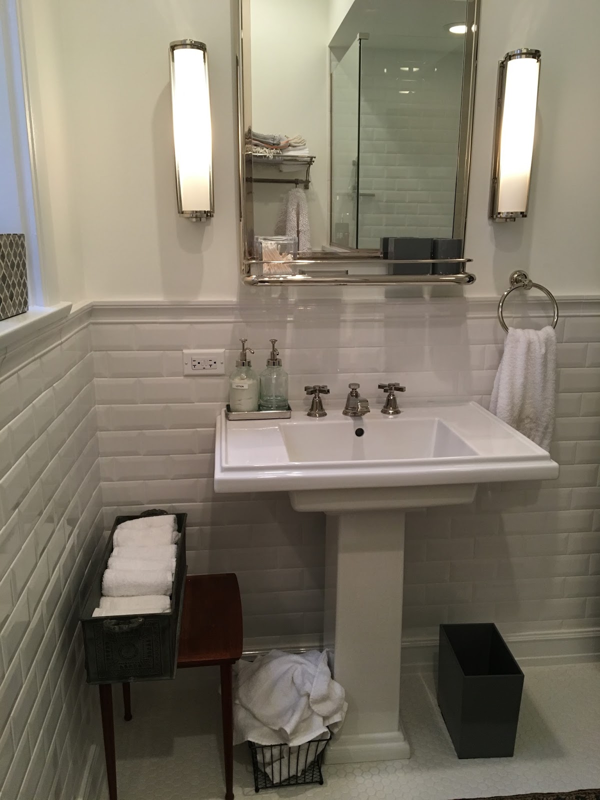 In the meantime, I wanted to update you quickly on the new bathrooms that have been completed! While our primary construction focus was on the second floor, the second floor bathroom and first floor bathroom are stacked right on top of each other, which, from a systems standpoint, meant that we had to treat them as one big bathroom project.