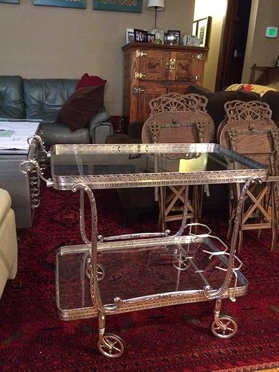 All of the rest of the stuff I've found for the "future house" like a pair of repro Louis VIV chairs, and an Arts and Crafts desk, and four really cool art nouveau iron folding chairs...not to mention all of the stuff we took out of CS's bungalow now that we have sold it. And THIS BAR CART!