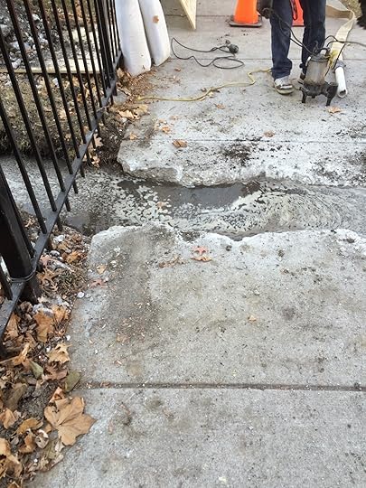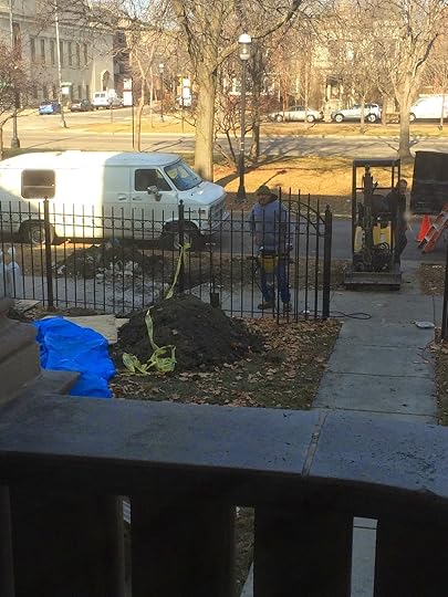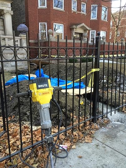 I'm sure our neighbors hate us, especially the dog walkers and stroller mommies, since the sidewalk has now been blocked since Monday, but we are excited because the new water service is the last piece of the puzzle before we can really start doing finish work in the basement! We still have a small part of the floor down there that hasn't been poured, because they had to be able to attach the new water service and run the pipe, and install the meter, so now we can button that up and really kick into high gear!