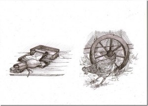 An unexpected find and an unexpected chicken. Artwork by Marie Fullerton