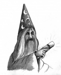 The wizard smiled and produced a small piece of parchment. ‘You will probably need this spell to finally obtain your licence. Mr Stickitt, the postmaster, is a little indisposed at the moment. It’s up to you when you use it. You can leave it until you come back from your task if you like, it would serve him right really.’