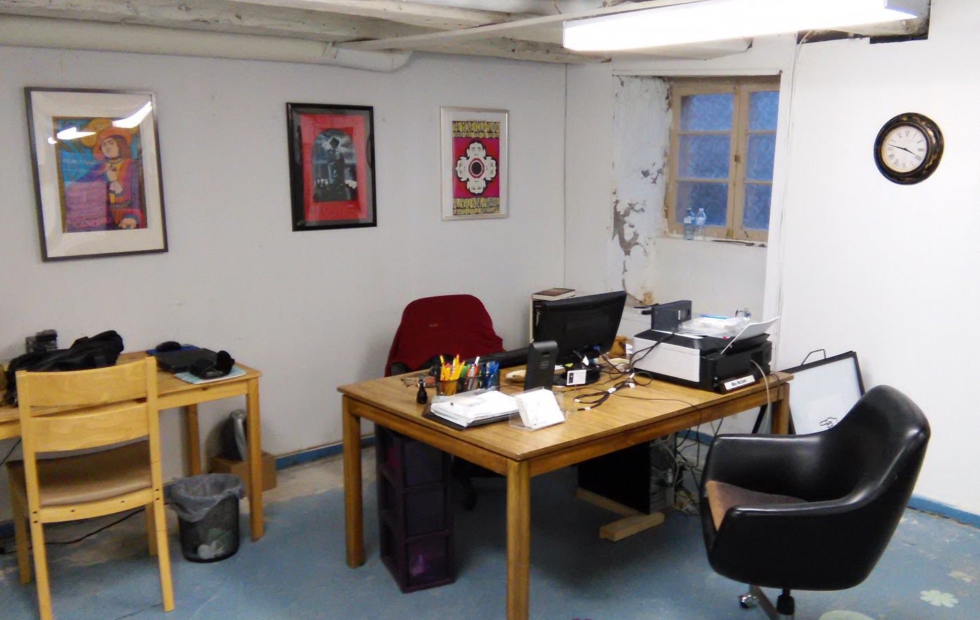 I've seen him twice now. A plump, healthy-looking brown mouse running along the baseboard under the chalk board. I think he's coming from a storage room just to the right of my workspace and heading for the furnace room down yonder at top speed. So ... I'm not alone after all.