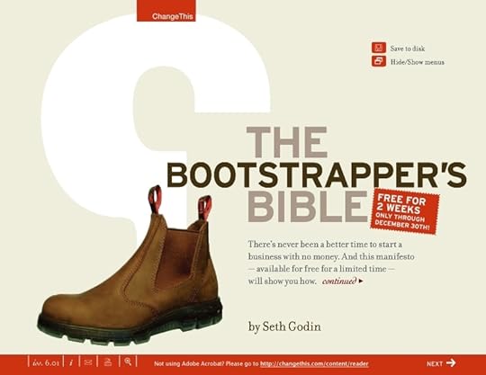 I am the underdog. I realize that others are rooting for me to succeed, and I will gratefully accept their help when offered. I also understand the power of favors, and will offer them and grant them whenever I can. -Seth Godin, THE BOOTSTRAPPER BIBLEIn my experience, a lot of writers feel like it's a little crass to sell yourself. I always thought this was silly for two big reasons:Fiction is selling. Whether it be a world, a character, or an idea, you are trying to convince the reader to believe you and your BS.Writers want to be read. Maybe it's crass that I'm not ashamed to admit it, I don't know. But I'm grateful for guys like Godin, who have done a lot of the heavy lifting when it comes to providing a framework for guys like me.