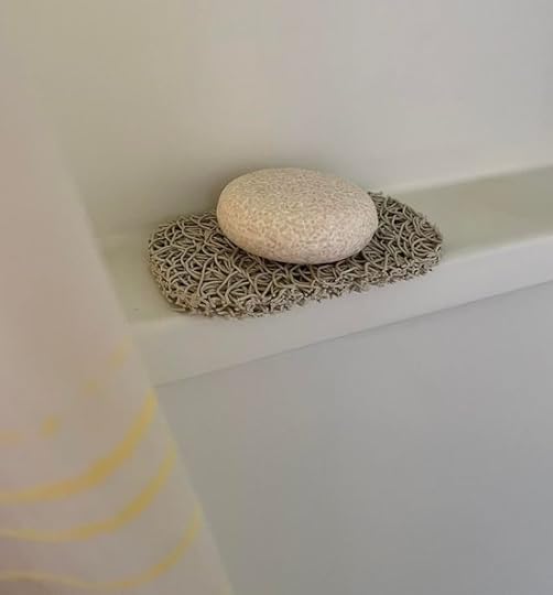Bar soap at the sinks. One is cranberry and makes the whole downstairs smell fruity and delightful. The other one looks and smells exactly like pumpkin bread. I cut it in half for each of our his-and-her sinks upstairs. As soon as I use up the rest of my liquid body wash, I think I’ll go for bar soap in the shower too.