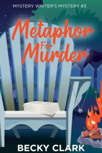 He and I have settled on a “chair theme” for those. Fiction Can Be Murder has the cozy reading chair, Foul Play on Words is set in a hotel during a conference, and Metaphor for Murder has a pivotal scene around a fire pit. It doesn’t take us too long to finalize them. I send him pictures of real chairs that make sense for the story and maybe the other clues on the cover—the key, the Do Not Disturb sign, the necklace and manuscript—and he puts his spin on them.