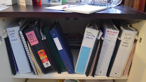 I had so many notebooks with notes from multiple books in them that I started buying 5-Subject ones. Once they’re full, I pack them in boxes and put them away.