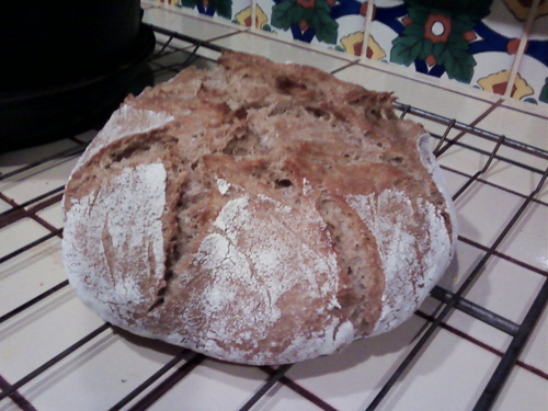 Anyway, now I have fresh crusty bread that's also full of protein and minerals and fiber and flavor, for about 27 cents a week plus the 20 minutes of enjoyable labor spread over two days: a few minutes to mix the dough, a few minutes the next day to set up the rising, pre-heating with the dutch oven inside, etc. Baking and eating a rustic bouleevery week is guaranteed to make you happy and satisfied every time.