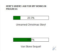 Thanks to my fellow writer friend, Brian Beam, I got the idea to add progress bars to my site. Now, the world will know if I'm working on my two books or not.