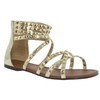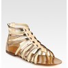Flavia might be a fourteen-year-old skank, but she's no slouch when it comes to dressing to seduce the emperor, Nero. She wears a stunning, peacock-blue, strapless chiton girded with a golden belt. Crawling through windows and climbing down trees isn't easy, but Flavia escapes her father's domus in style—wearing gold-studded gladiator sandals, bling by Stephanie Owen, and carrying a Versace Baroque Studded Nappa Shoulder Bag.