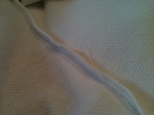 The white sweatshirt was done with a regular seam that involves you putting your palms together, sewing the edge and spreading your palms apart. Which works on a lot of different seams in a lot of different fabrics because it's easy and clean. But with four thread coverstitch on French terry it looks like a thirty-dollar sweatshirt.