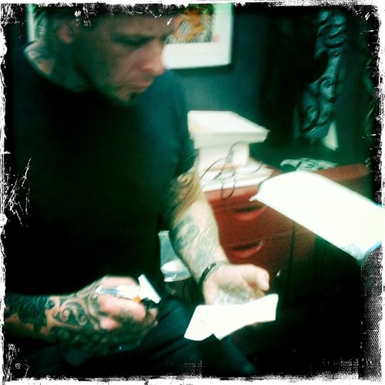 This is Shane, my tattoo artist. Shane was a funny fellow. Not like Dylan Moran funny, mind you. More like "I bury the dismembered corpses of streetwalkers under my bungalow" funny.