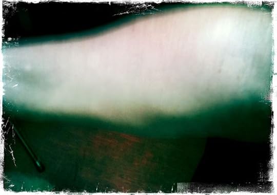 This is my pasty, cracker whitebread arm, freshly shaved and awaiting the stencil. You will notice the photo is blurred – this is because I was trembling when I took it. Not because of the anticipated pain, mind you, but because the dude about to paint my body for life had just admitted "He doesn't usually do this kind of artwork."