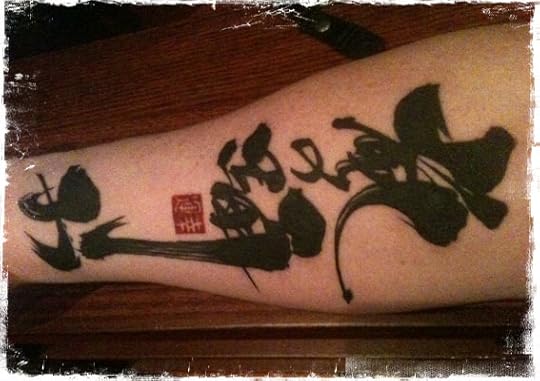 This is my tattoo design. It was done by an incredibly talented Japanese calligrapher named Araki Miho from Ebisu Design. Yes, she does commissions. Having seen a wall full of her artwork, yes, her stuff is beautiful. Picture Kate Beckinsale and Liv Tyler making out naked in a swimming pool full of pristine First Edition issues of Detective Comics #27 and you're in the ballpark.