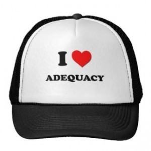 Excellence can be quantified, sure, and we should all aspire to it. Poor performance can be avoided as well with the help of keen analysis. But neither striving for excellence nor avoiding error and harm can get us through a weekday morning, a whiny toddler, a chronic illness, a day full of things-to-do and people with quite legitimate demands whom we need to serve. Sustaining a notion of adequacy is key. The Adequacy League recognizes this. Though it presents no awards, reimburses no one for travel expenses, and has no meetings, it will exist, quietly, wherever you are, as long as you need it.