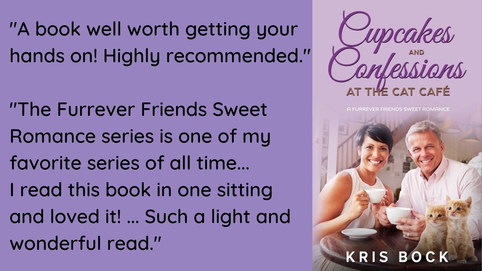 "The Furrever Friends Sweet Romance series is one of my favorite series of all time. I really love reading about the cat cafe and the romances between different characters in the books. I’ve read all of the books in the series so far and always look forward to reading more. I read this book in one sitting and loved it! I love how these two seemingly awkward characters are so forward with each other which is a good thing yet a bad thing sometimes, but works out... Such a light and wonderful read. Thank you for continuing to write more in this series!!"