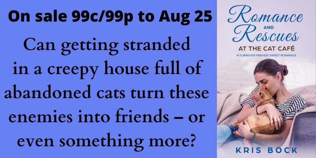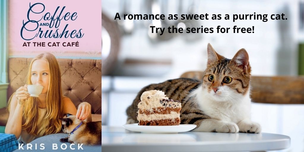 Coffee and Crushes at the Cat Café is “Sweet and innocent #romance will make you feel good about people again.” (Amazon US, Amazon UK, other countries)Get a free 10,000-word story set in the world of the Furrever Friends cat café when you sign up for the Kris Bock newsletter. You’ll also get a printable copy of the recipes mentioned in the cat café novels, plus fun content about cats, announcements of new books, sales, and more.